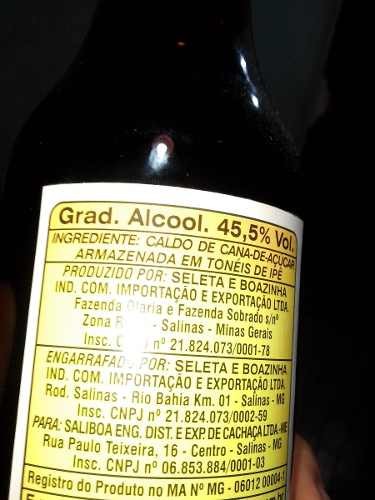 Graduação Alcoólica: 45,5% Tempo de Armazenamento: 5 anos Madeira: Ypê Amarelo